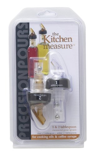 - The set of two pourers dispense the ideal kitchen use measurements: 1 tablespoon (clear) and 2 tablespoons (amber)