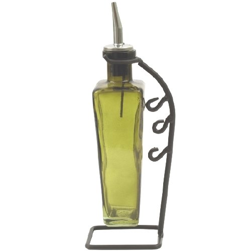 Classic Retro Vinegar and Oil Dispenser ~ Olive Oil Bottle ~ Vinegar Bottle ~ Decorative Liquid Dispenser ~ Cruet ~ Drizzler ~Vintage Green Provence Bottle w/ Spout & Stand Review